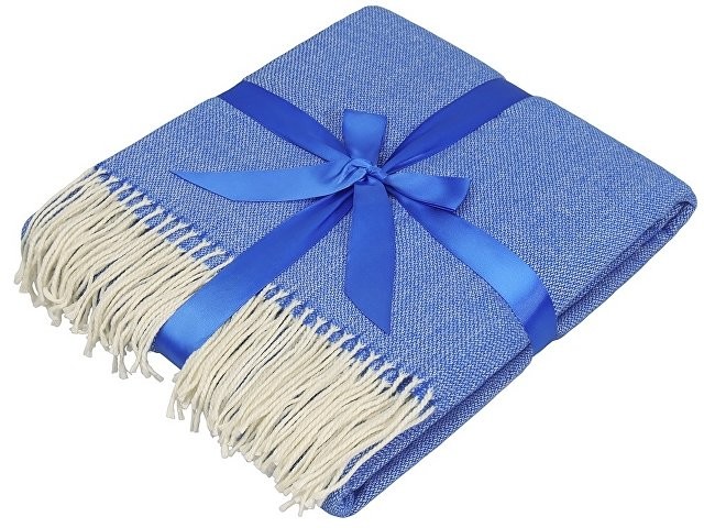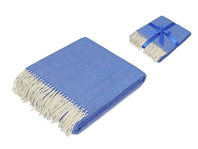 Большой размер этого мягкого плотного пледа позволяет использовать его как одеяло и как покрывало для вашего интерьера. По бокам плед украшен бахромой. В комплекте идет упаковочная синяя лента, на которой можно сделать нанесение вашего логотипа.