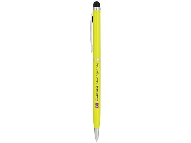 Расчет нанесенияАлюминиевая шариковая ручка Joyce. Тонкая алюминиевая шариковая ручка с поворотным механизмом и стилусом. Алюминиевый корпус с металлическим зажимом и кольцом посередине, остальные элементы из пластика.