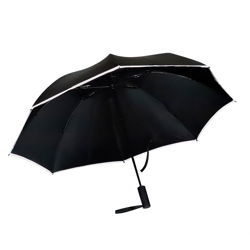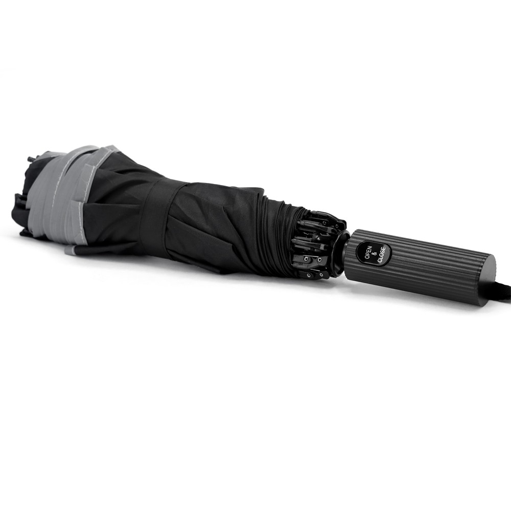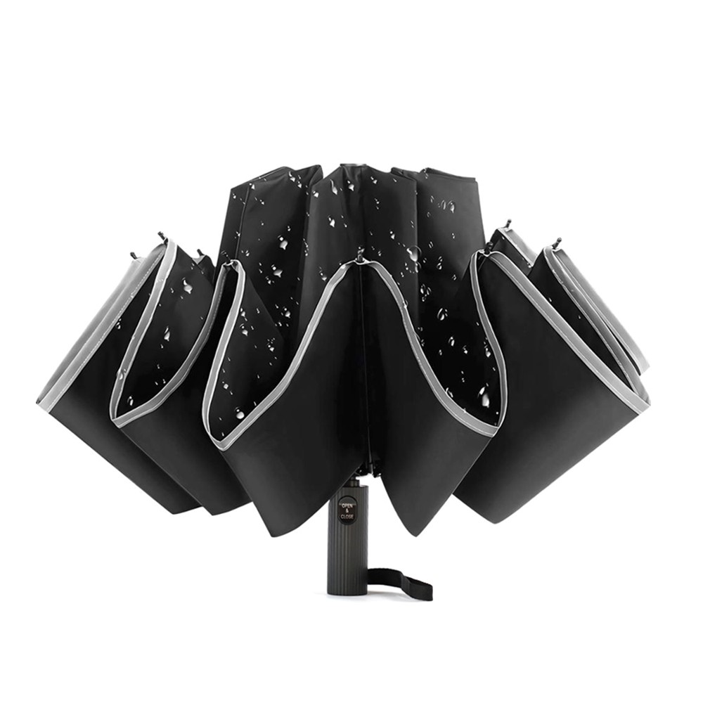 Автоматический противоштормовой складной зонт-наоборот Flash reverse со светоотражающей полосой – реверсивный зонт в необычном дизайне. Реверсивный (обратный) способ складывания/раскладывания купола выполнен таким образом, чтобы мокрая сторона спряталась внутрь. Зонт как бы вывернут на изнанку. В итоге внутренняя (сухая) сторона становится наружной, а та, что намокла от дождя, остается внутри. Легким движением - купол выворачивается в обратную сторону (противоштормовая функция). Материал купола – эпонж со светоотражающей кромкой. Вы будете замеченным со светоотражающими полосами зонта и останетесь в безопасности в темную дождливую погоду. На материале зонта вода превращается в капельки и скатывается, а сам зонт остается сухим. Ветрозащитная функция – спицы из стекловолокна, а специальное устройство препятствует поломке спиц при резких порывах ветра. Условия эксплуатации: 1. Освободите фиксирующую лямку. 2. Нажмите кнопку OPEN на ручке зонта на расстоянии слегка вытянутой руки, во избежание травмирования лица. 3. При закрытии зонта нажмите кнопку CLOSE на ручке зонта, движением руки – приведите в состояние полного закрытия зонта.