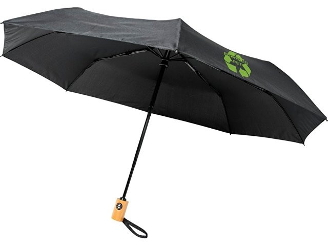 Автоматический складной зонт Bo из переработанного ПЭТ-пластика, черный