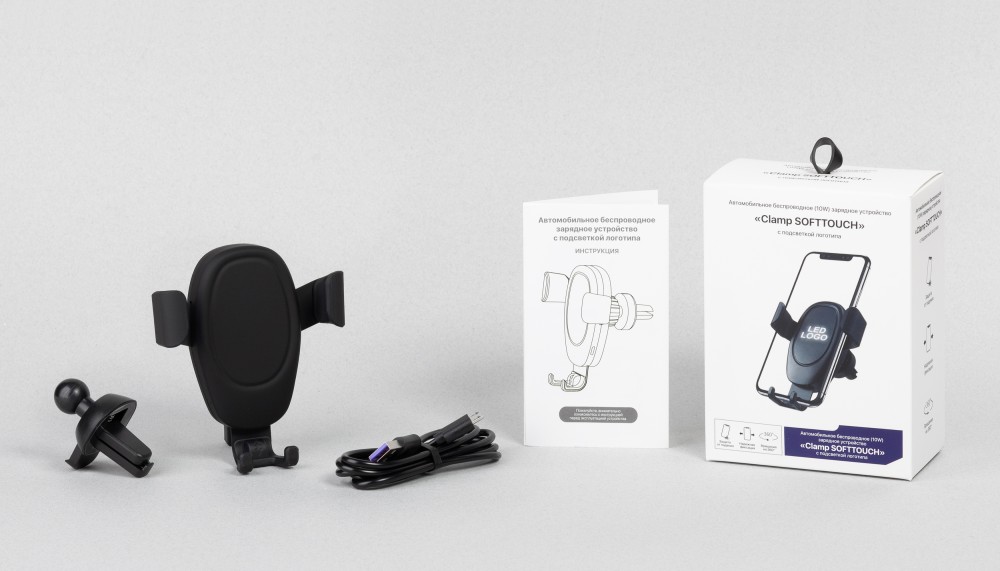 Устройство 2-в-1 – автомобильный держатель для телефона + быстрое (10W) беспроводное зарядное устройство. Гаджет выполнен в тактильно приятном покрытии soft touch. Благодаря поворотному кронштейну можно настроить необходимый угол обзора экрана смартфона. Эффектное дополнение - яркая персонализация в виде подсветки логотипа.