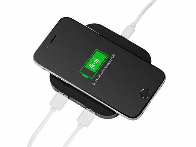 Зарядное устройство позволяет заряжать смартфон беспроводным способом. Просто подключите беспроводную зарядку к компьютеру или любому активному USB-порту и поместите телефон на нее. Работает только с моделями, поддерживающими беспроводную зарядку. Для беспроводной зарядки моделей без поддержки функции беспроводной зарядки используйте внешний беспроводной ресивер или чехол с ресивером. Устройство обладает функциями USB-концентратора и имеет 2 выхода USB.