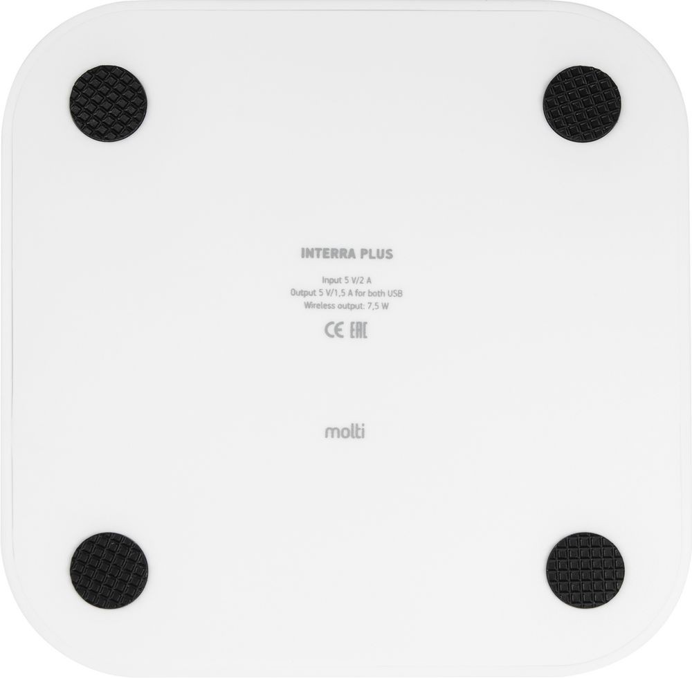 При подключении к внешнему сетевому адаптеру светодиодный индикатор мигнет два раза: устройство Interra Plus готово к размещению на верхней части корпуса смартфона с поддержкой беспроводной зарядки.