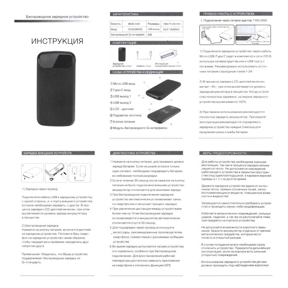 - Вход Type-C (input): 5V/2.0А;