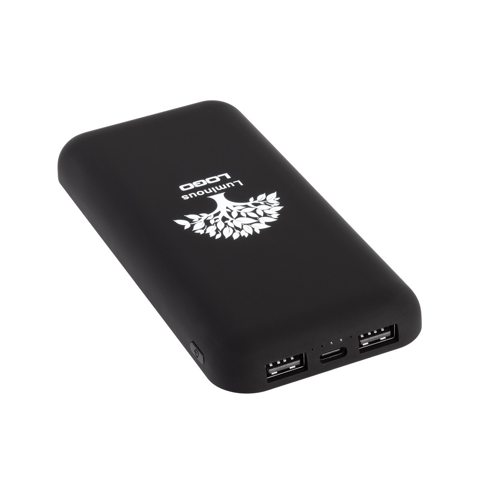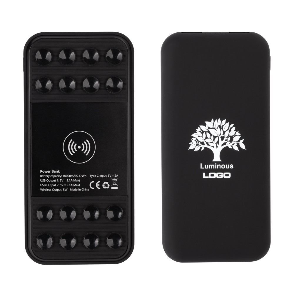 "Sticky SOFTTOUCH" - современный пауэрбанк оптимальной ёмкости с корпусом в приятно тактильном, бархатистом покрытии soft touch. Функционал позволяет одновременно заряжать до 3х гаджетов: два - проводным способом (благодаря двум USB-выходам) и один - беспроводным способом по Qi-стандарту. Несомненным удобством в конструкции является наличие присосок, позволяющих удобно разместить телефон на пауэрбанке во время беспроводной зарядки. Дополняет образ яркая персонализация - эффектная подсветка логотипа, включающаяся во время зарядки гаджетов.