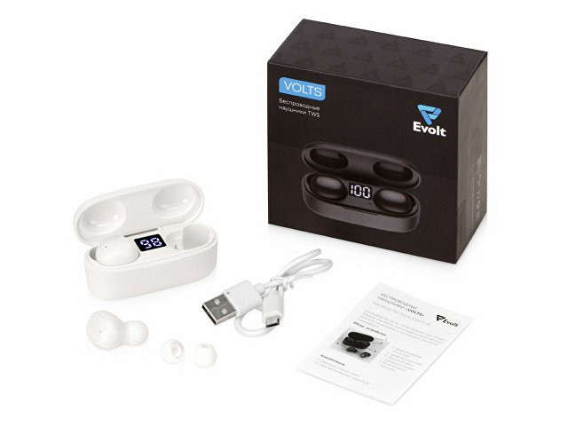 Компактные беспроводные наушники с отличным звуком и функционалом. Наслаждайтесь любимыми композициями в течение 4 часов на одном заряде. Кейс обеспечит дополнительно 3 полных заряда наушников (итого 16 ч). В кейсе расположен цифровой дисплей, чтобы видеть текущий уровень заряда. Наушники «Volts» можно использовать как гарнитуру. Многофункциональная кнопка на наушниках позволяет принимать/отклонять звонки, вызывать голосового помощника, управлять громкостью и воспроизведением. Отдельно стоит выделить практически мгновенное включение и подключение наушников. При извлечении из кейса наушники автоматически включаются, соединяются между собой и подключаются к смартфону по Bluetooth (если это не первое подключение к Вашему устройству). В комплекте – 2 наушника, зарядный кейс, зарядный кабель, запасные амбушюры и инструкция. - Отличный звук, наличие басов. - Наличие микрофона. - Мгновенное автоматическое включение и подключение. - Воспроизведение до 4 часов (16 часов с учетом зарядного кейса). - Многофункциональная кнопка для управления звонками, музыкой и голосовым ассистентом (напр. для Apple - Siri).