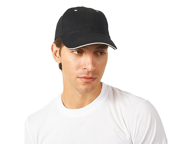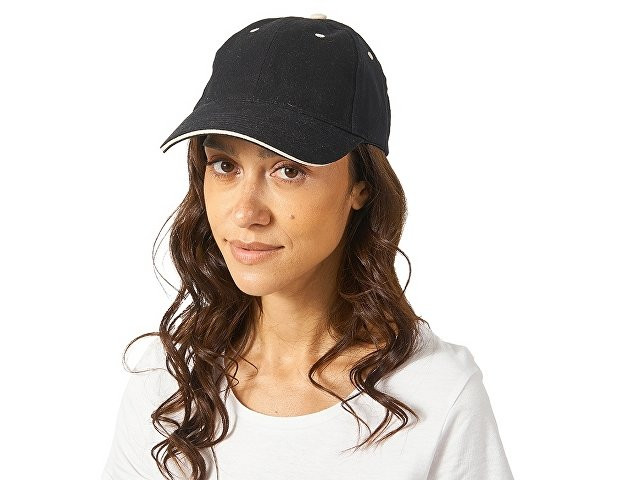 Бейсболка "New Castle" 6-ти панельная, черный/натуральный