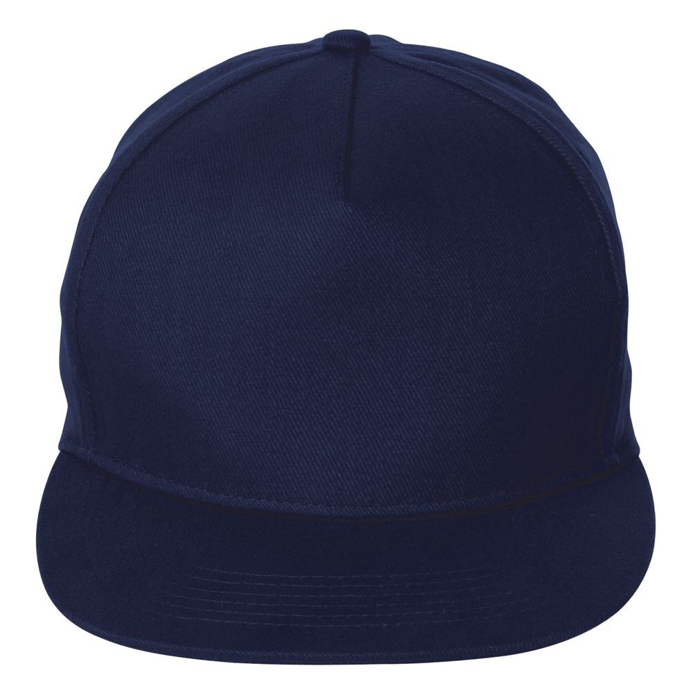 Однотонная бейсболка с 5 клиньями из материала, на ощупь напоминающего шерсть. Плоский козырек, 4 вышитых отверстия для вентиляции, регулируемая пластмассовая застежка сзади.