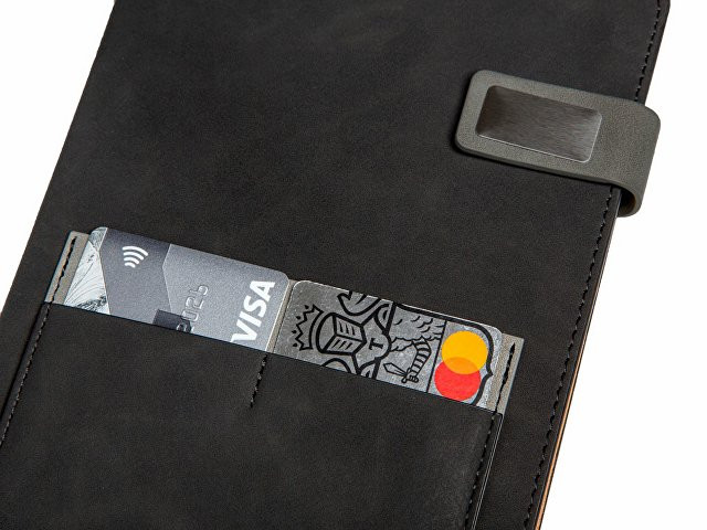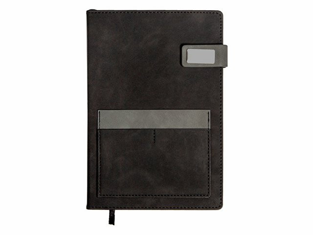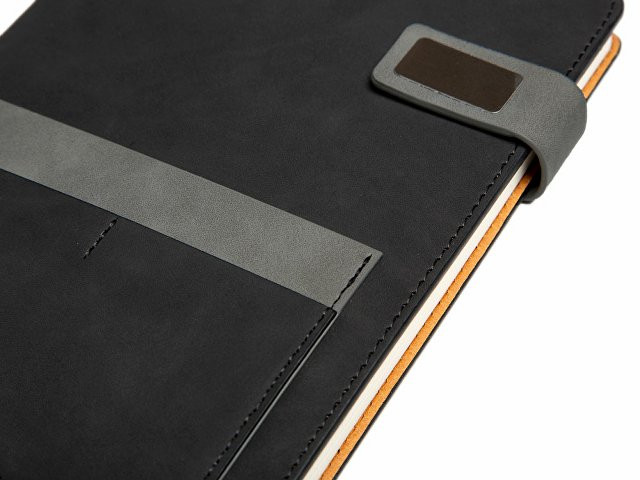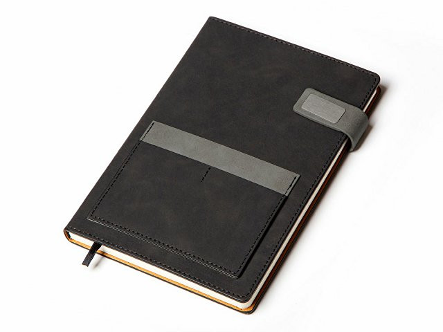 Бизнес блокнот А5 "Freya" с клапаном и карманом для визиток, твердая обложка, 128 листов, черный и свет