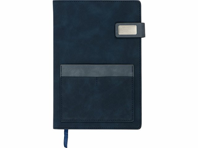 Бизнес блокнот А5 "Freya" с клапаном и карманом для визиток, твердая обложка, 128 листов, синий и темно
