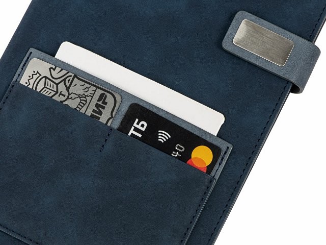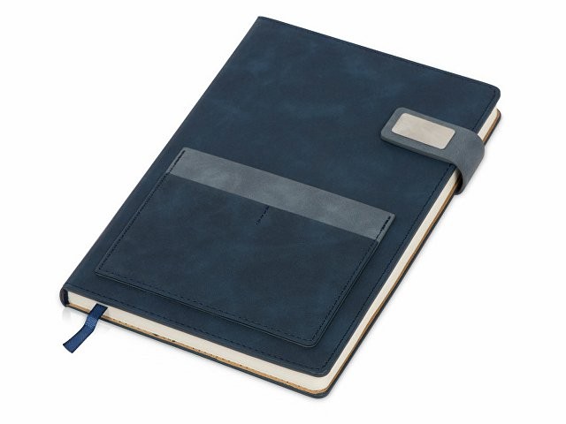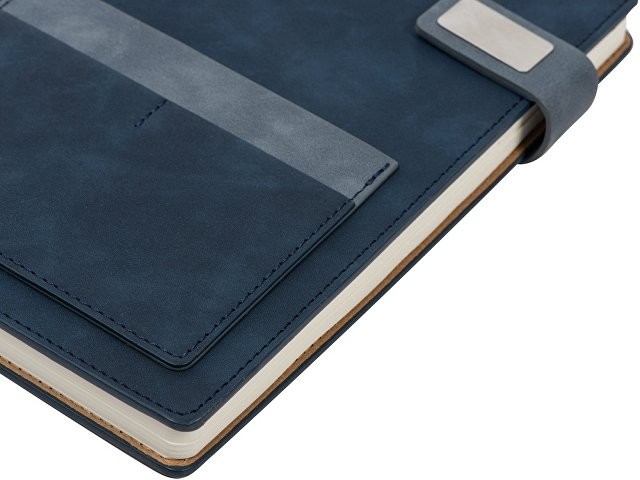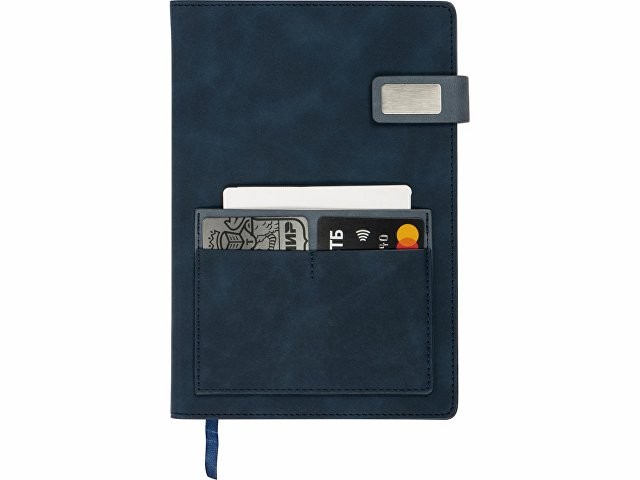 Бизнес блокнот А5 "Freya" с клапаном и карманом для визиток, твердая обложка, 128 листов, синий и темно