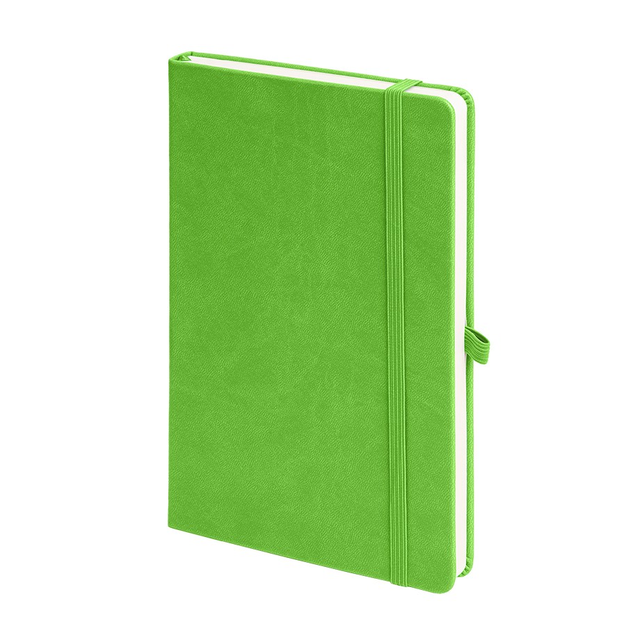 Бизнес-блокнот "Justy", 130*210 мм, желтый, твердая обложка, резинка 7 мм, блок-линейка, Зеленый