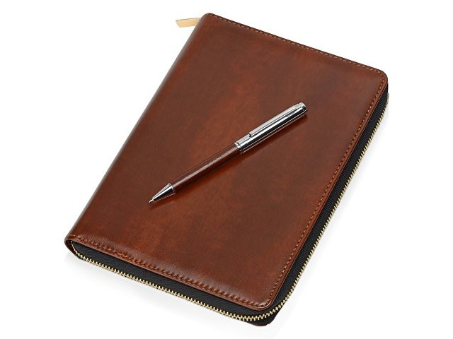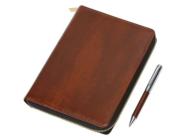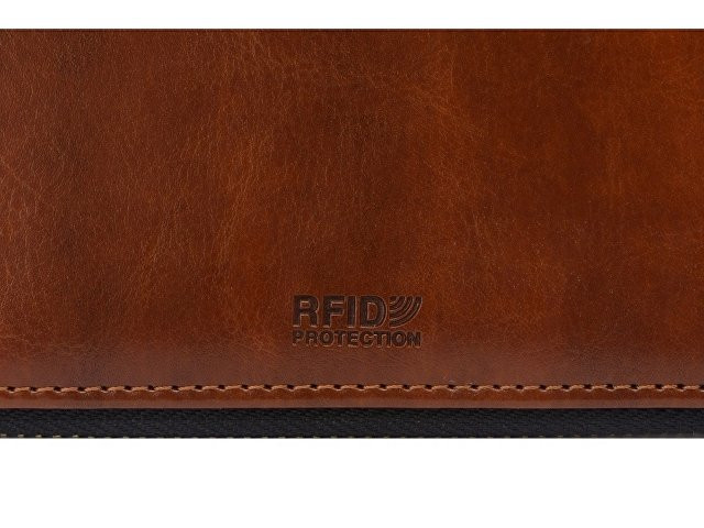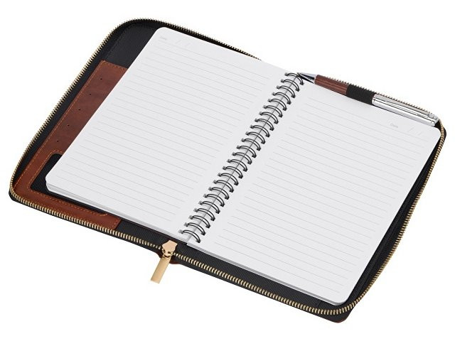 Бизнес блокнот Fabrizio состоит из пенала на молнии выполненного из искусственной кожи, и сменной тетради на 80 листов на кольцах с перфорированными линованными листами белого цвета. Блокнот снабжен 5 отделениями для карт и RFID защитой, которая охраняет вашу личную и финансовую информацию от мошенников. В комплекте идет ручка, подходящая блокноту по стилю и цвету.