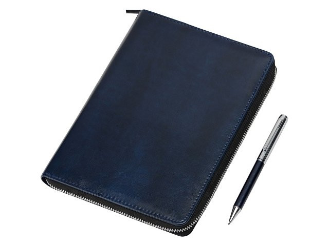 Бизнес-блокнот на молнии А5 «Fabrizio» с RFID защитой и ручкой, синий