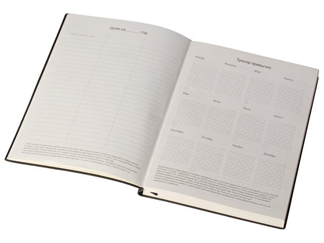 Supreme от Lettertone — бизнес-блокнот с гибкой обложкой, которая одновременно надежно защищает бумажный блок и обеспечивает изделию прочность. Бумажный блок выполнен из бумаги, полученной из древесины из специальных восполняемых лесных ресурсов, имеет сертификат FSC, международной некоммерческой организации лесного попечительского совета. Линовка — недатированный ежедневник, а на первых страницах вы встретите специальные листы для постановки целей на год и подведения итогов, а также другие трекеры. Обложка выполнена из двух видов искусственной кожи: рифленого, в тонкую полоску, основного материала и патча с покрытием софт-тач, который очень приятен на ощупь. Упаковка — шубер из крафта. - 128 листов - бумага из восполняемых лесных ресурсов - ляссе для быстрой навигации - трекеры и специальные страницы для планирования