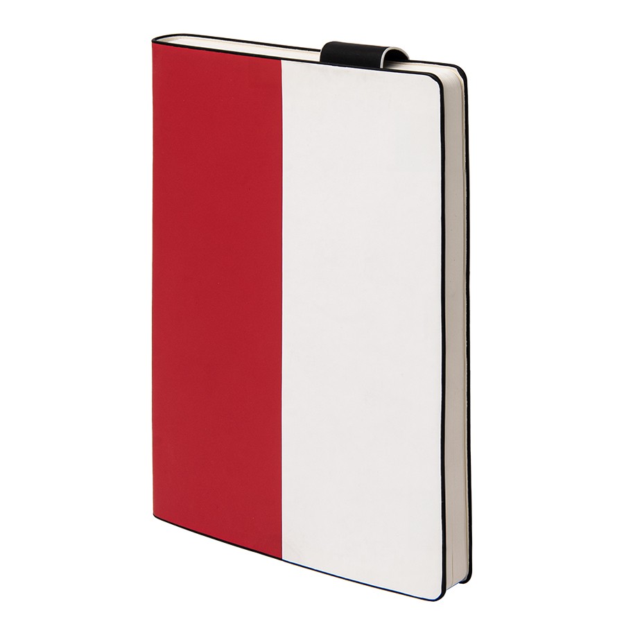 Бизнес-блокнот UNI, A5, бело-красный, мягкая обложка, в линейку, черное ляссе, Красный
