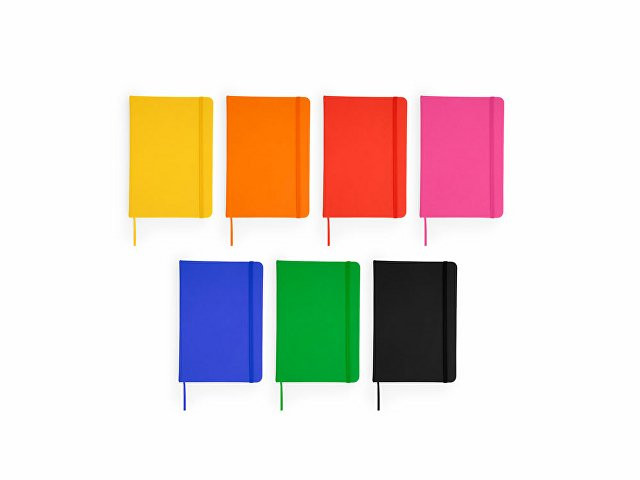 Блокнот формата А5 в жесткой обложке из кожзаменителя. Закладка и резинка. 100 листов.