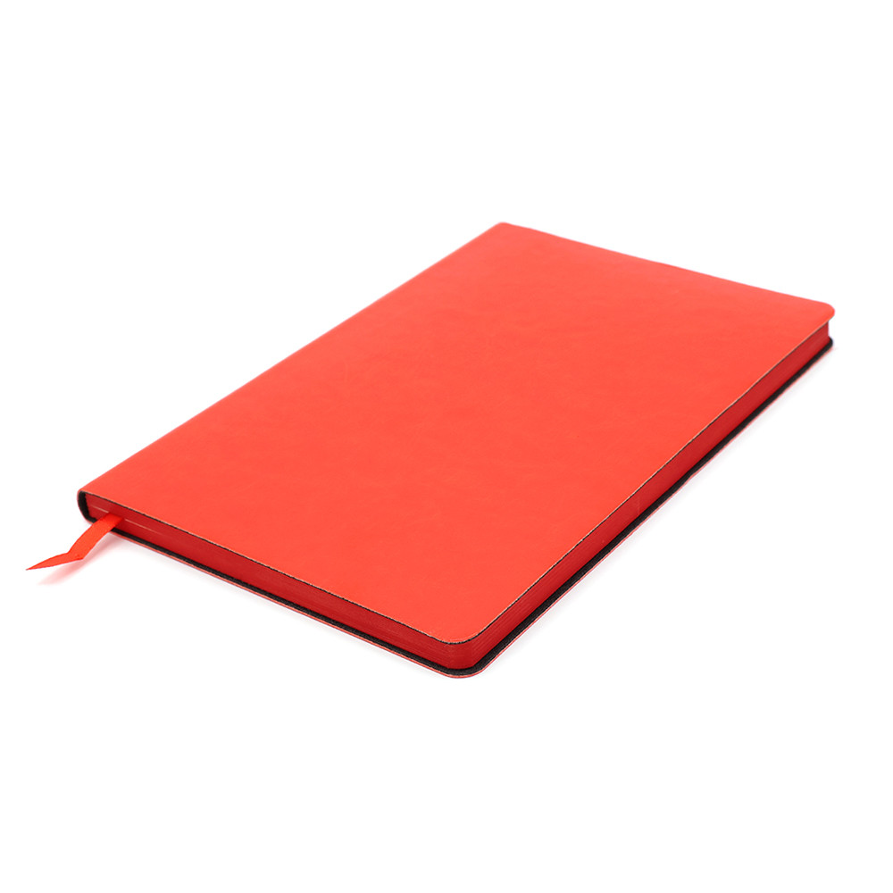 Блонот формата А5 в мягкой обложке из искусственной кожи. Материал обложки - полиуретан. Размеры: 213*143мм, 96 листов, разлинееные страницы, бумага плотностью 70г/м2, срез прокрашен в цвет обложки. Ляссе в цвет обложки.