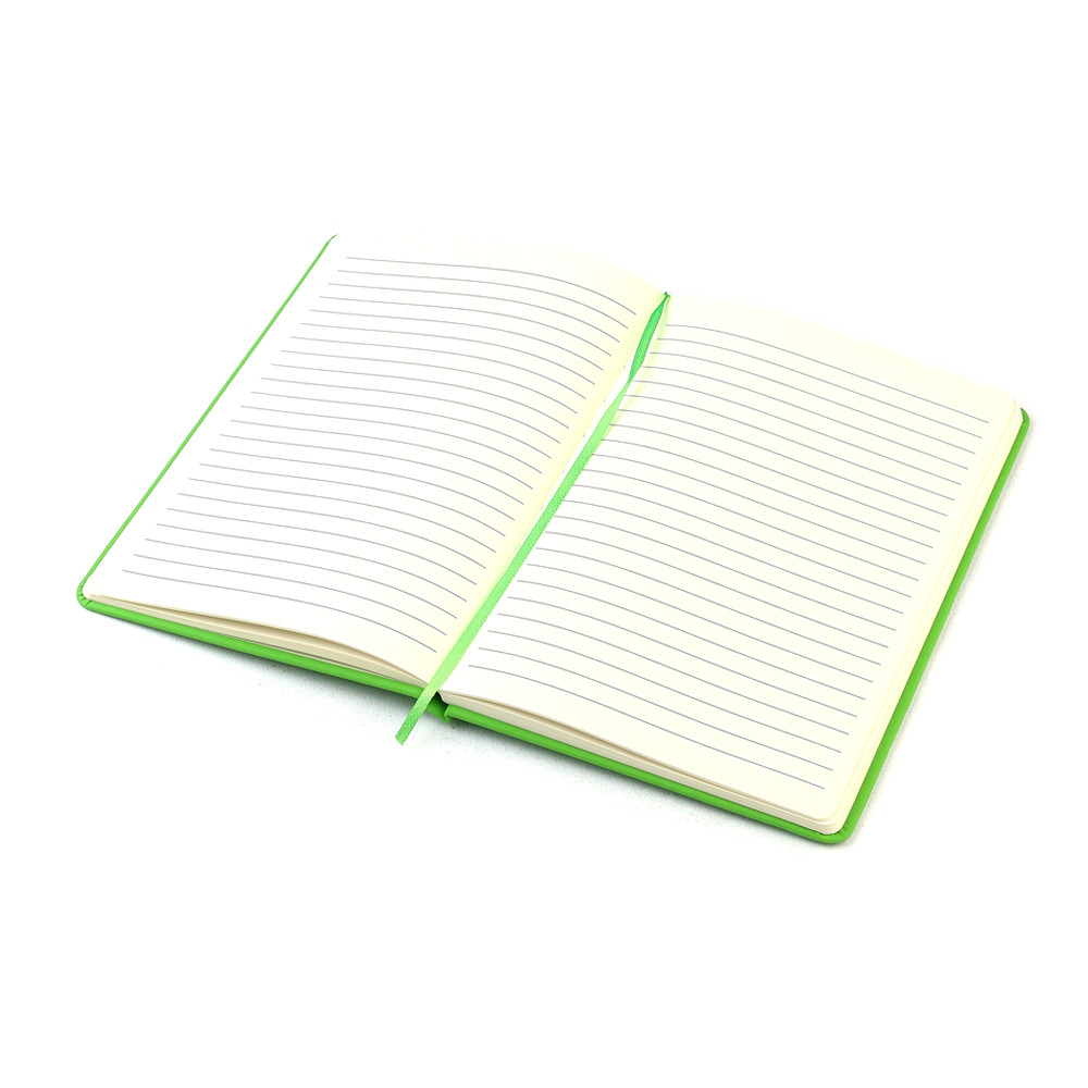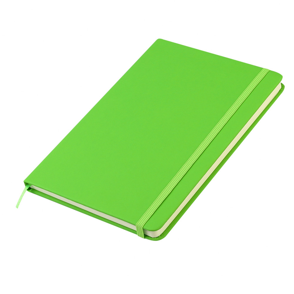 Блокнот формата А5 с твердым покрытием из PU-материала с имитацией рисунка кожи, с эластичной застежкой для закрытия и текстильной закладкой в цвет блокнота, 192 страницы, плотность 70г/м, страницы с черными линиями. Цвет по PANTONE® (максимально приближен): 3501C.