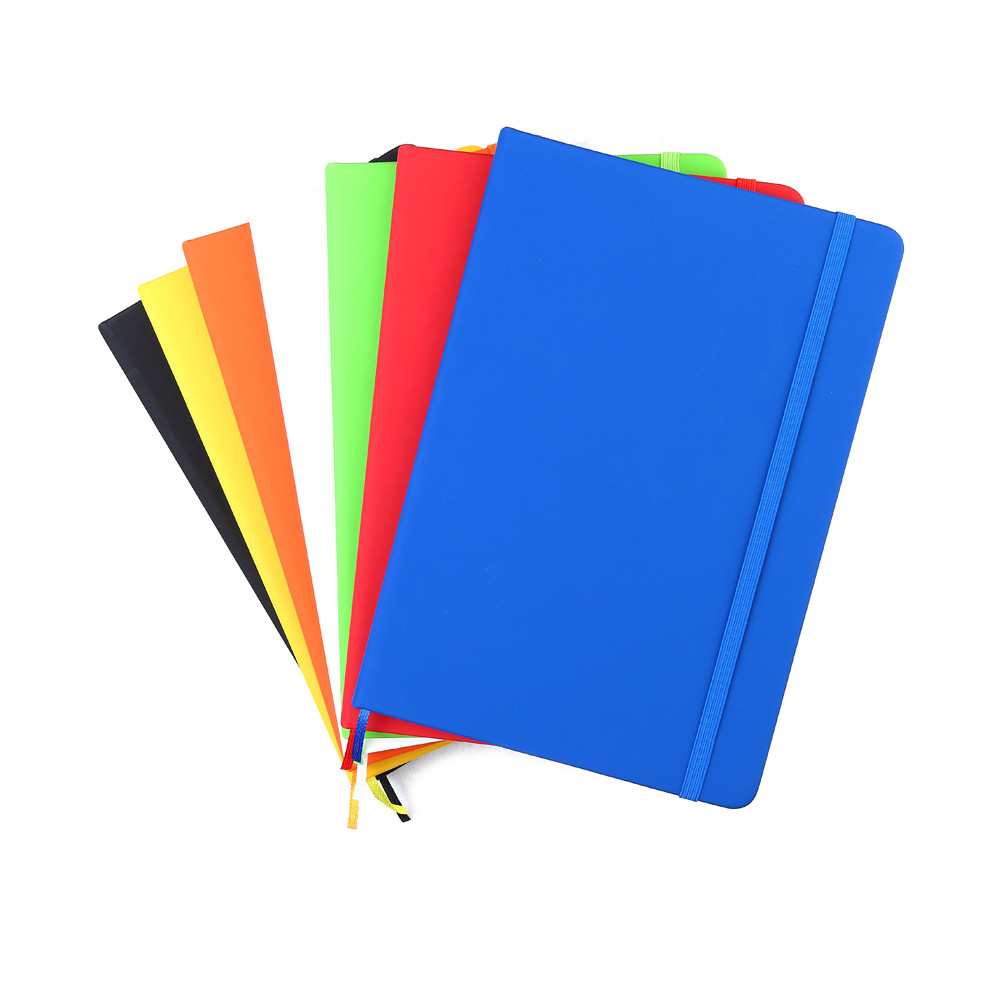 Блокнот формата А5 с твердым покрытием из PU-материала с имитацией рисунка кожи, с эластичной застежкой для закрытия и текстильной закладкой в цвет блокнота, 192 страницы, плотность 70г/м, страницы с черными линиями. Цвет по PANTONE® (максимально приближен): 109C.