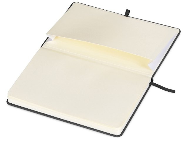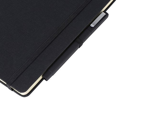 Расчет нанесенияЛаконичный дизайн, приятная на ощупь твердая обложка имеет фактуру ткани. В блокноте 160 линованных страниц кремового цвета с плотностью 80 г/м2, петля для ручки, лента-закладка и удобный карман для карточек и записок.
