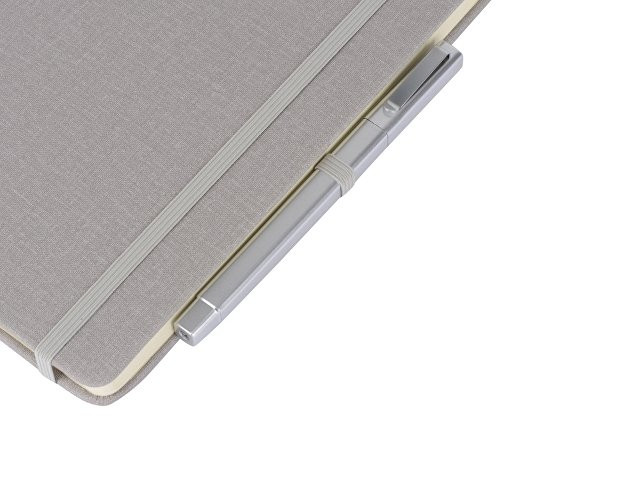 Расчет нанесенияЛаконичный дизайн, приятная на ощупь твердая обложка имеет фактуру ткани. В блокноте 160 линованных страниц кремового цвета с плотностью 80 г/м2, петля для ручки, лента-закладка и удобный карман для карточек и записок.