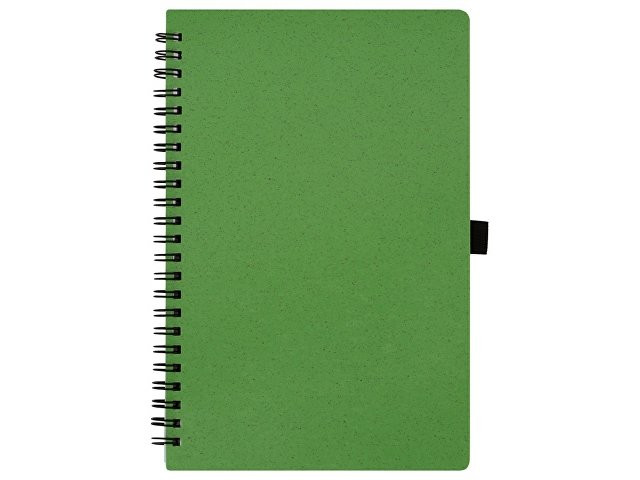 Блокнот с обложкой из переработанной пшеницы и пластика. Блок состоит из 70 листов переработанной бумаги белого цвета. Крепление - пружина. Дополнен петлей для ручки.
