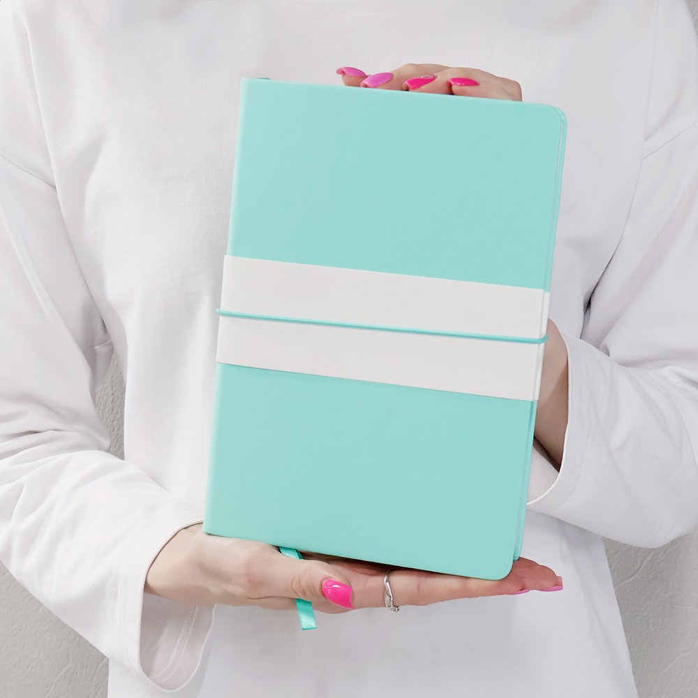 Блокнот А5-формата жёсткой обложке со специальным гладким покрытием. Материал обложки — полиуретан. Карман в нахзаце, форзац, двойное ляссе, эластичная застёжка — всё комплиментарно цвету обложки. Размеры: 150*214*24 мм, 384 разлинеенные страницы / 192 листа, бумага плотностью 70г/м2. В кармане можно переносить визитки, купоны и т.д.
