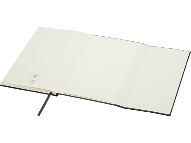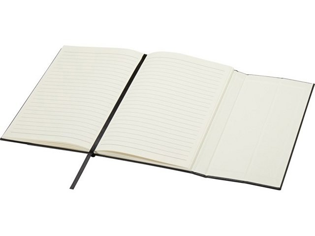 Блокнот Alejandra формата A5 в твердой обложке изготовлен из переработанного полимерного и PET-пластика с 80 линованными листами кремовой бумаги плотностью 70 г/м², а также оснащен ленточкой-закладкой и карманом-гармошкой.