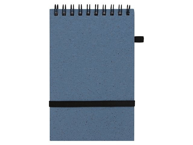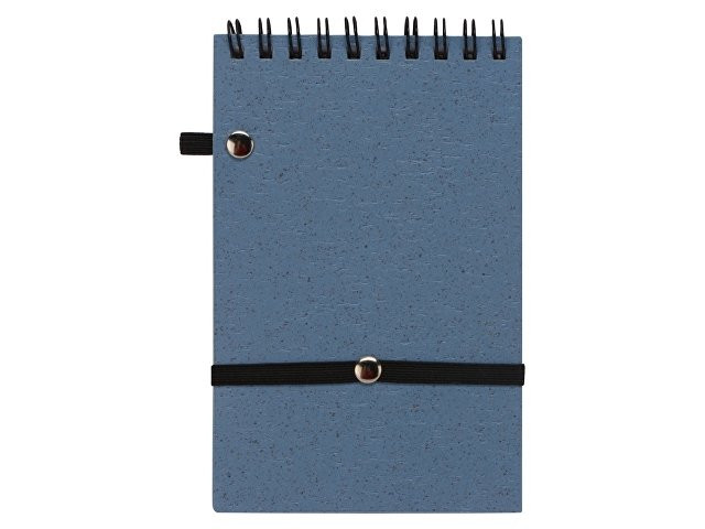 Блокнот с обложкой из переработанной пшеницы и пластика. Блок состоит из 60 листов переработанной бумаги белого цвета. Крепление - пружина. Дополнен петлей для ручки и горизонтальной резинкой.