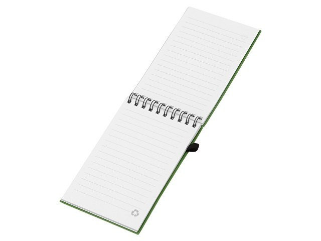 Расчет нанесенияБлокнот с обложкой из переработанной пшеницы и пластика. Блок состоит из 60 листов переработанной бумаги белого цвета. Крепление - пружина. Дополнен петлей для ручки и горизонтальной резинкой.