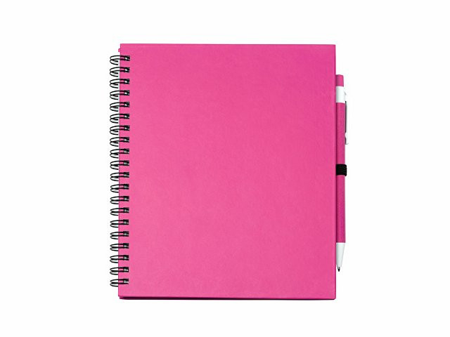 Блокнот LEYNAX с ручкой из переработанного картона, фуксия