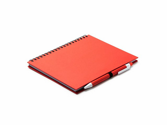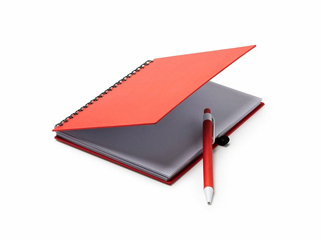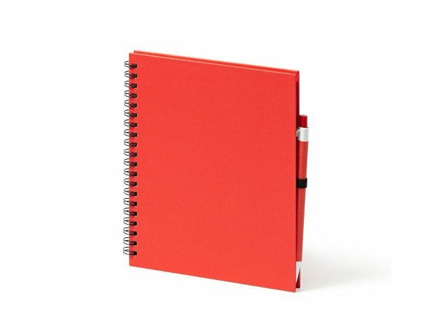 Блокнот LEYNAX с ручкой из переработанного картона, красный