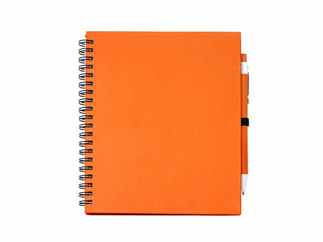 Блокнот LEYNAX с ручкой из переработанного картона, оранжевый