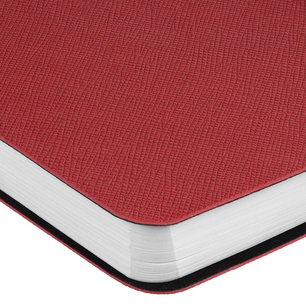 Блокнот с гибкой обложкой, выполнен из материала Saffian, красный РР. Дополнен ляссе в цвет обложки.