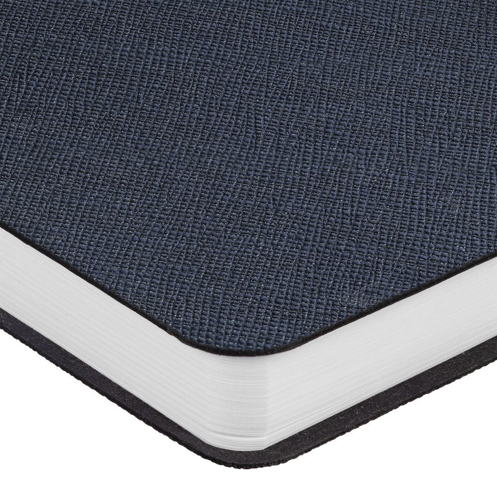 Блокнот с гибкой обложкой, выполнен из материала Saffian, синий НН. Дополнен ляссе в цвет обложки.