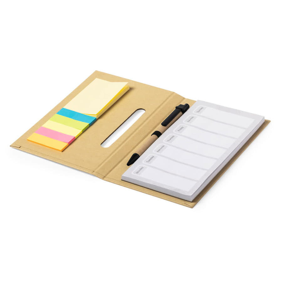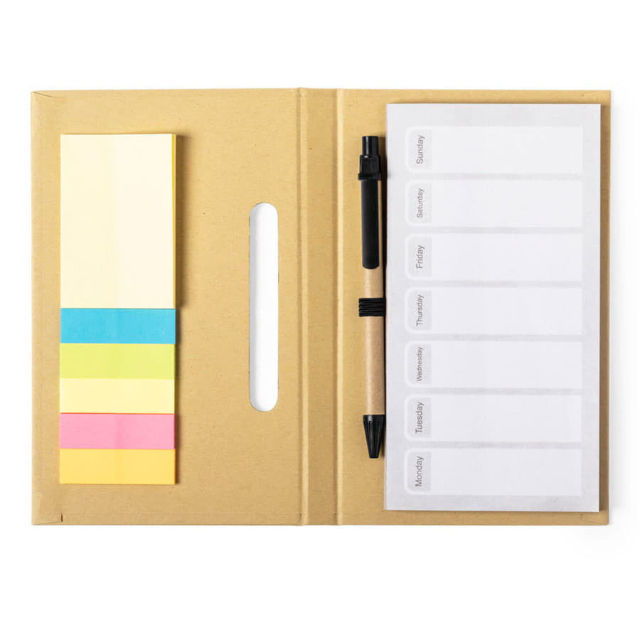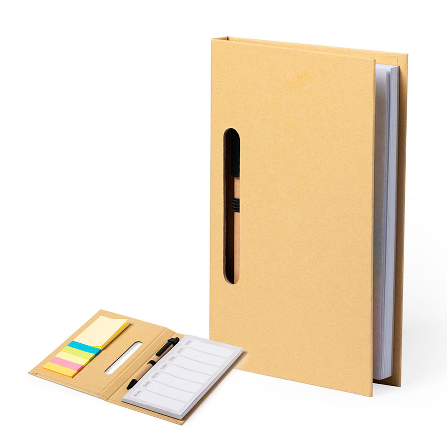 Блокнот со стикерами и ручкой KENDIL, рециклированный картон, бежевый