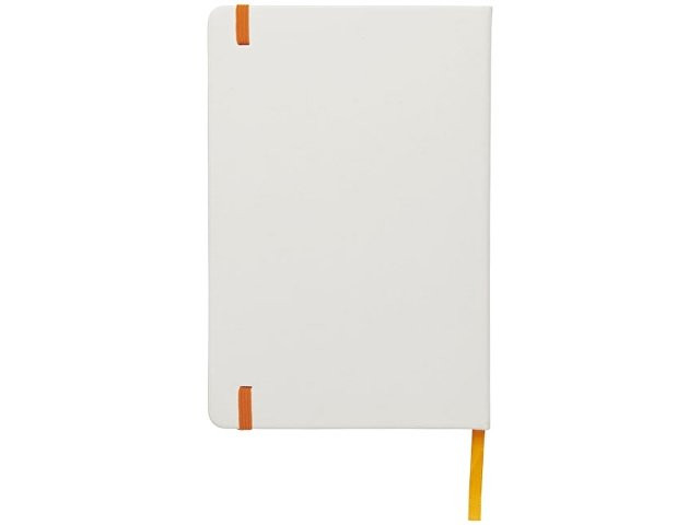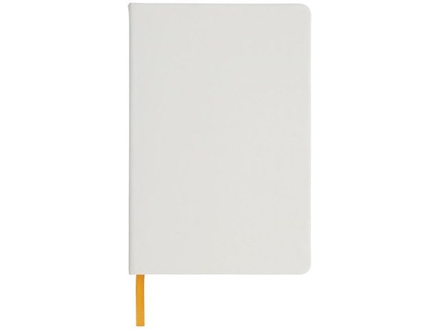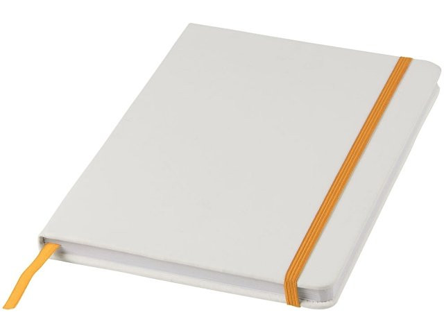 Белый блокнот A5 с цветной эластичной закладкой и резинкой. 96 страниц (60g/m2), линованная бумага. На обложке возможна цифровая печать.