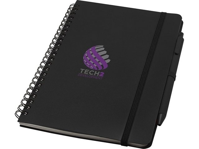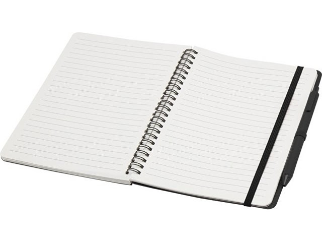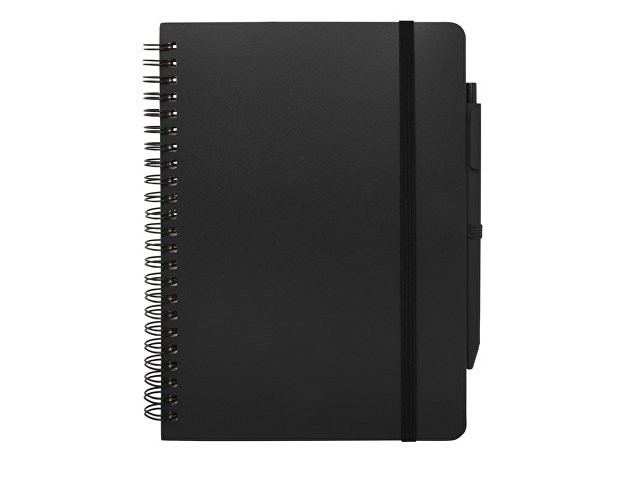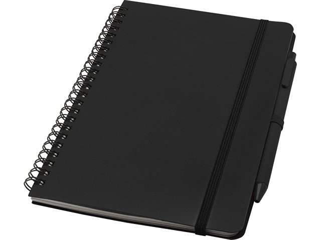 Блокнот Thalaasa формата А5 в твердой обложке из океанического пластика с шариковой ручкой - сплошной черный