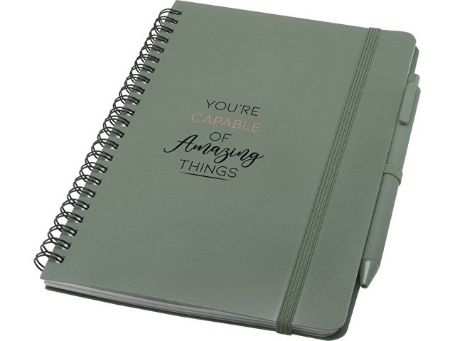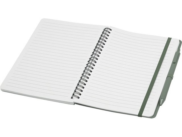Блокнот Thalaasa формата A5 в твердой обложке изготовлен из переработанного океанического пластика и содержит 80 линованных листов кремовой бумаги плотностью 70 г/м². Блокнот имеет закругленные углы, эластичную застежку и петлю для ручки. Шариковая ручка с черными чернилами также изготовлена из переработанного океанического пластика. Длина непрерывной линии: 1000 метров. Размер пера: 1,0 мм.