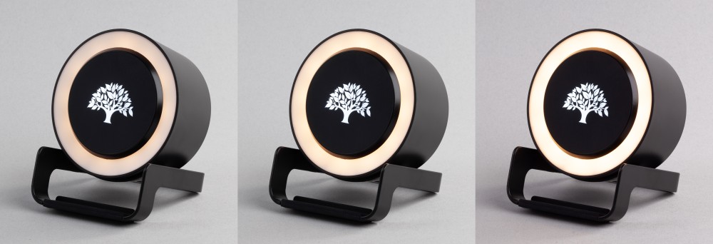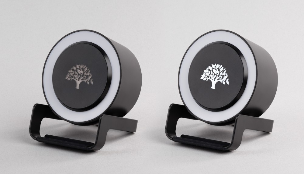 Эффектное дополнение - подсветка логотипа. Колонка легко снимается с основания-подставки, что обеспечивает удобное нанесение методами лазерной гравировки, тампо- или УФ-печати.