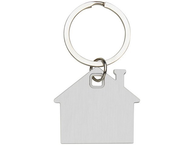 Расчет нанесенияБрелок для ключей в форме домика с цветной вставкой из пластика между 2-мя серебристыми пластинами из стали.