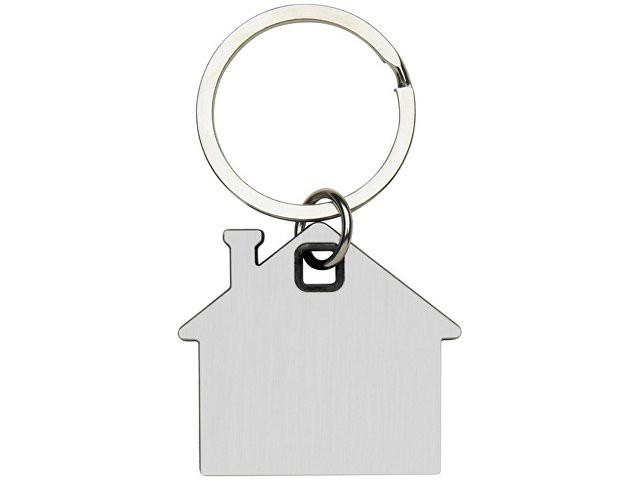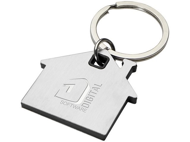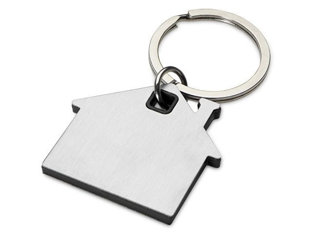 Расчет нанесенияБрелок для ключей в форме домика с цветной вставкой из пластика между 2-мя серебристыми пластинами из стали.