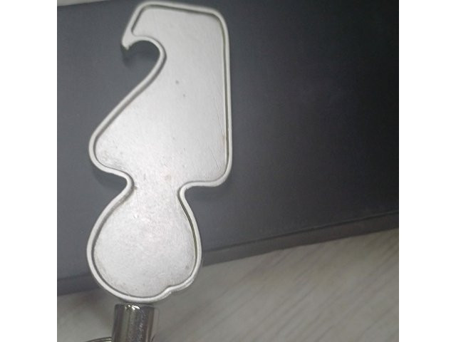 Отличный профессиональный подарок: брелок-открывалка, корпус которой изображает человека.