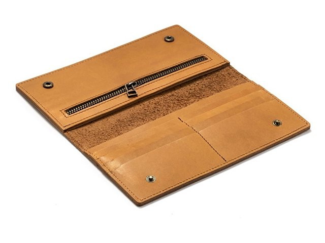 В меру строгий и универсальный, этот кошелек будет верным решением для людей, привыкших носить всё своё при себе. Из фурнитуры присутствует молния и надежные заклёпки. Плотная кожа готова к любым превратностям судьбы – от случайно пролитого кофе до ежедневного многолетнего ношения в разнообразных сумках и рюкзаках.