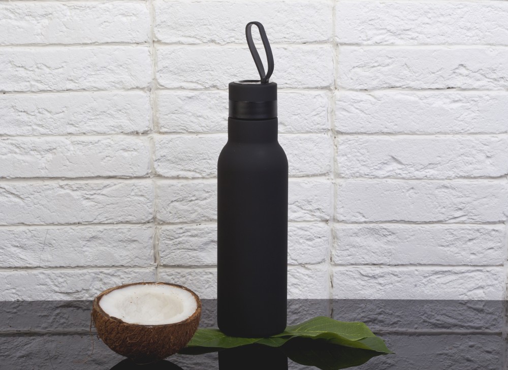Завинчивающаяся колба защищает от протекания, удобная силиконовая ручка позволяет комфортно носить бутылку.