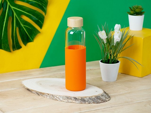 Бутылка для воды стеклянная "Refine", в чехле, 550 мл, оранжевый