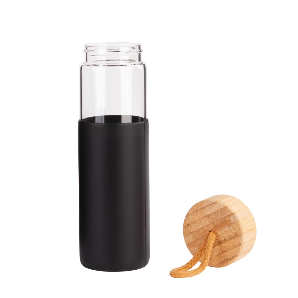 Крышка из бамбука и полипропилена обеспечивает полную герметичность, ручка с петелькой – удобны для переноса бутылки.
