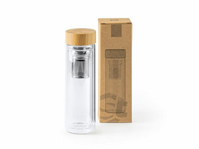 Расчет нанесенияБутылка из боросиликатного стекла с двойными стенками и бамбуковой крышкой. Включает ситечко для заваривания чая, так что вы можете взять его с собой куда угодно. Объем 420 мл.