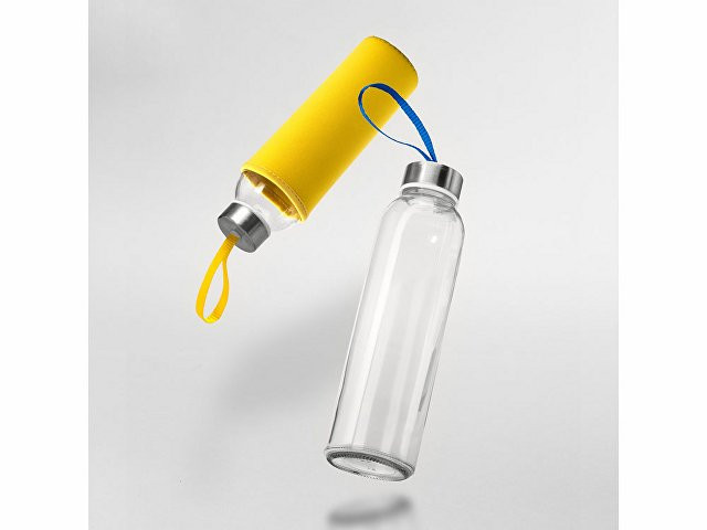 Бутылка стеклянная CAMU в чехле из неопрена, 500 мл, прозрачный/желтый